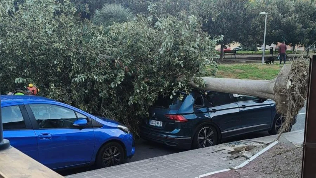 Otro de los momentos más sorprendentes y que demuestran la fuerza del viento se produjo en la Playa de San Juan, concretamente en el PAU 5, donde el viento arrancó de cuajo un árbol de grandes dimensiones que cayó sobre el techo de un vehículo aparcado y posteriormente bloqueó toda la carretera.